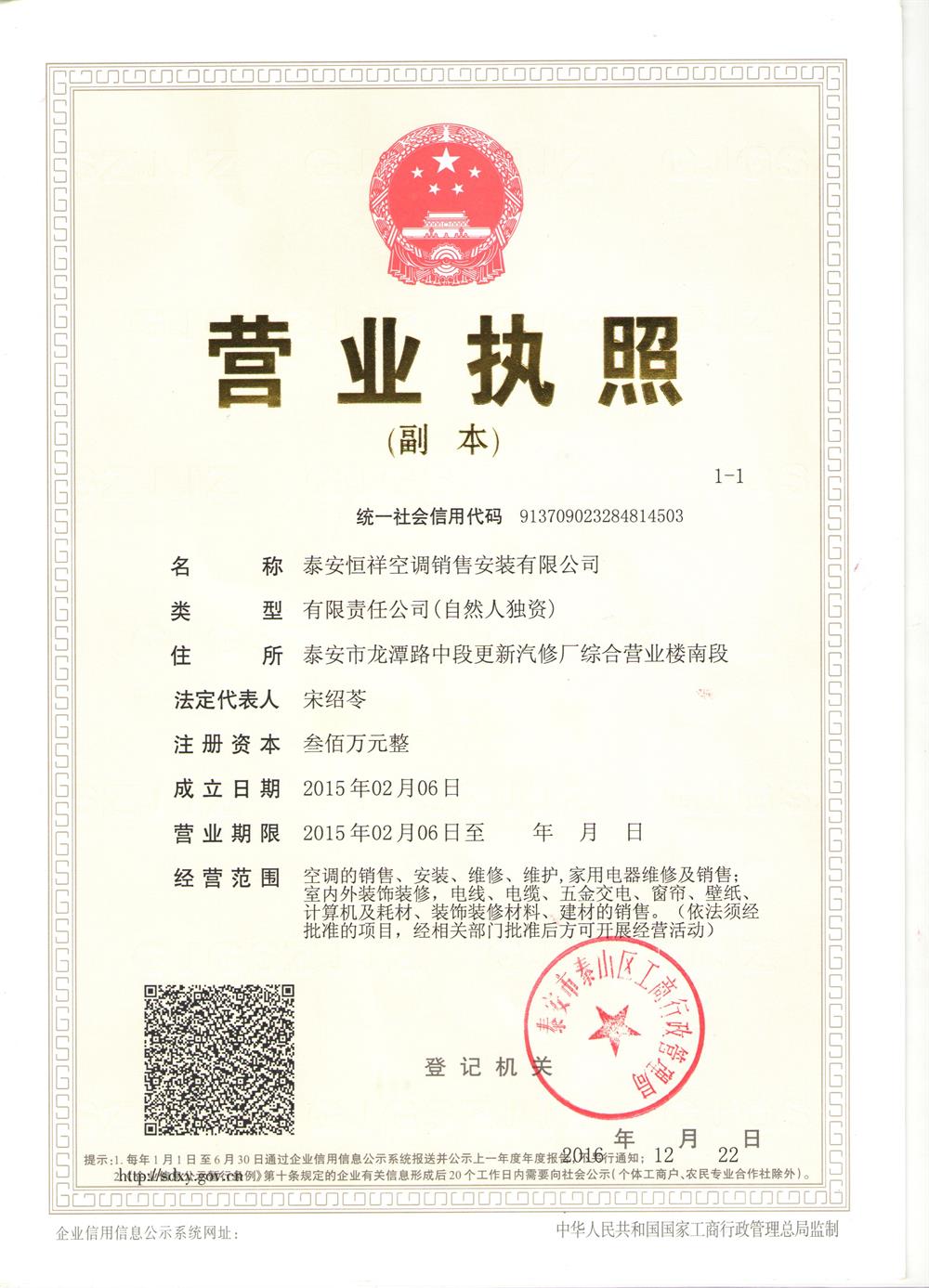 泰安恒祥空調(diào)銷(xiāo)售安裝有限公司